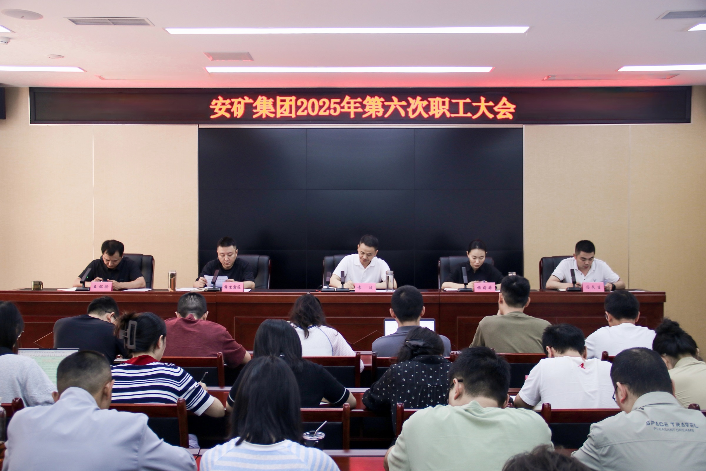 9月5日,安礦集團召開2025年第六次職工大會,集中傳達學習習近平總書記關(guān)于防汛救災工作的重要指示精神,以及省委十二屆七次全會、市委八屆十次全會、區(qū)委三屆九次全會精神。黨支部書記、董事長袁波出席會議并講話,黨支部委員、總經(jīng)理、工會主席楊婷婷主持會議。